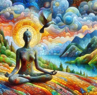Meditation is like giving our attention a workout. We focus on our thoughts, feelings, or even our breath without getting distracted. It comes in different forms like mindfulness or using mantras. It's great for improving our ability to concentrate, relax, and feel good.